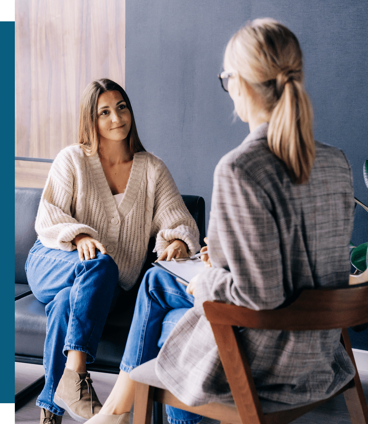 Two women engaged in a thoughtful conversation in a cozy setting.